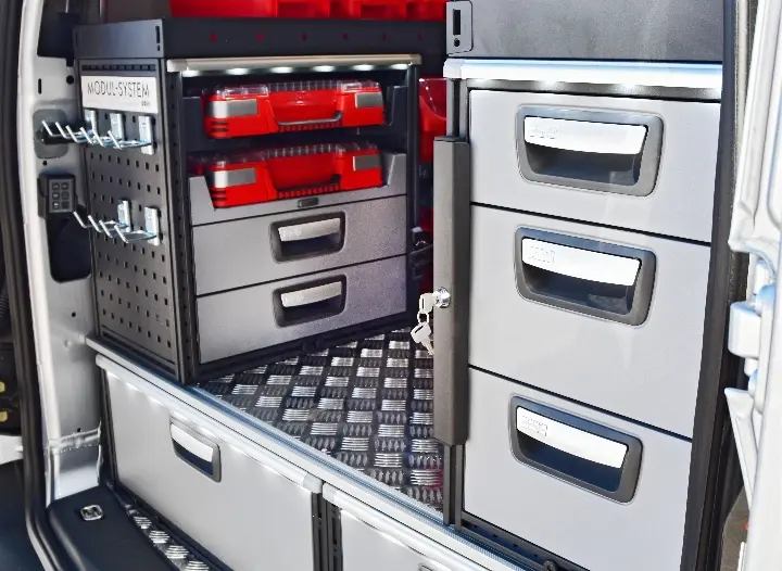 Dansk Bilmontage er din danske specialist inden for bilindretning og samarbejder med Modul-System, en af verdens førende producenter af innovative løsninger til erhvervskøretøjer. Med mere end 50 års erfaring og adgang til produkter af højeste kvalitet tilbyder vi løsninger, der optimerer arbejdsflow, reducerer vægt og øger holdbarheden i din bilindretning.